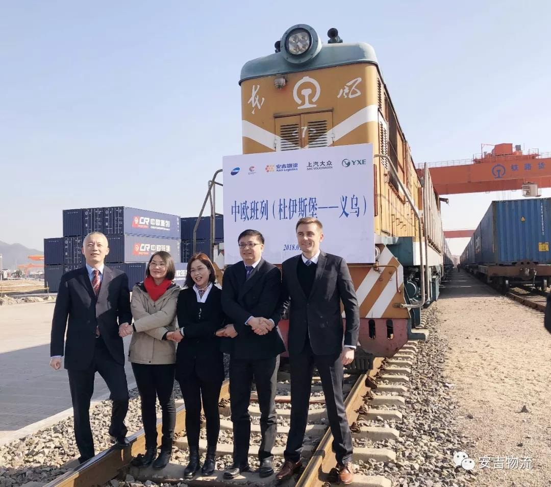 ThisCR Express train started on December 18, 2017 at Duisburg, entered China through Alataw Pass after traveling over 13000 km through Poland, Belarus, Russia and Kazakhstan for over 20 days with twice reloading, and finally arrived at Yiwu West Station. Since receiving client’s urgent shipping demand on December 8, the Overseas Business Division of Anji Logistics, with collective wisdom and efforts, took charge in the whole process of “door-to-door” transportation from factory pick-up, railway transportation, customs clearance, and delivery to domestic warehouse of Volkswagen.