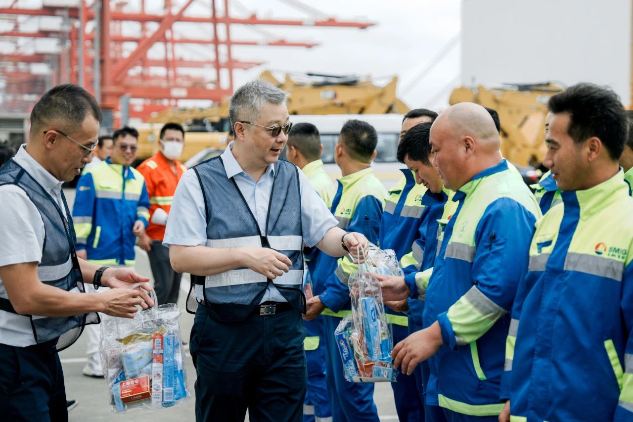 领导一行首先前往码头前沿候工楼,深入了解一线生产情况,并查看了台风“贝碧嘉”对码头设施设备的损坏情况。在运作现场,庄菁雄总经理高度称赞海通员工在今年极端高温及超强台风的影响下,坚守岗位,保障生产的拼搏精神,叮嘱员工做好职业防护,确保安全和健康。