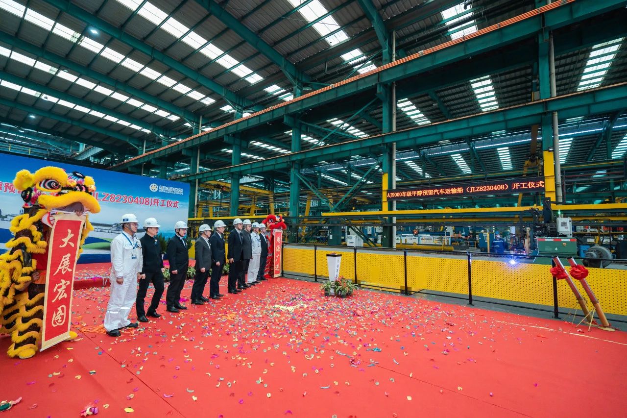 11月20日上午11点58分,76net必赢官网第四艘9000车级滚装船开工仪式在江苏仪征招商局金陵船舶(南京)有限公司顺利举行。