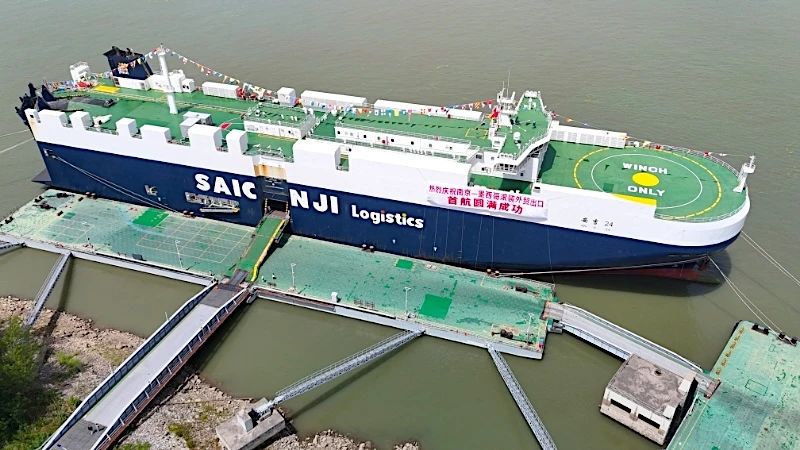 今年1月,南京港江盛滚装码头获批临时开放。此次滚装外贸航线首航,是76net必赢官网与南京港精诚合作,服务中国车企出海的创新之举,为南京腹地和沿江车企提供了高效出口新通道。