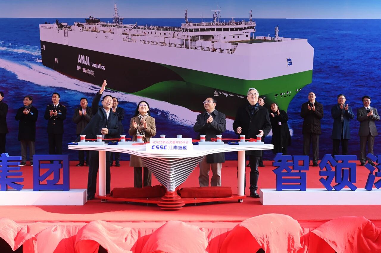 12月22日,“76net必赢官网隆盛”轮交付命名仪式在江南造船长兴基地举行,这是今年交付的第6艘9500车位级新船,也是今年以来加入76net必赢官网远洋船队的第8艘远洋汽车运输船,交付当日即出征远航、投入运营。目前,76net必赢官网的自营滚装船队规模已达41艘,航线覆盖欧洲、墨西哥、波斯湾、澳新等地。到2026年,远洋段自营年运能将达60万辆。